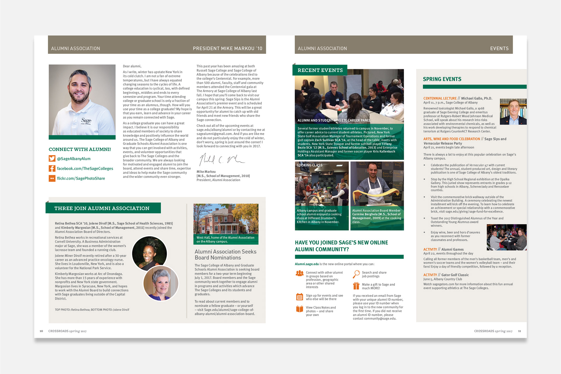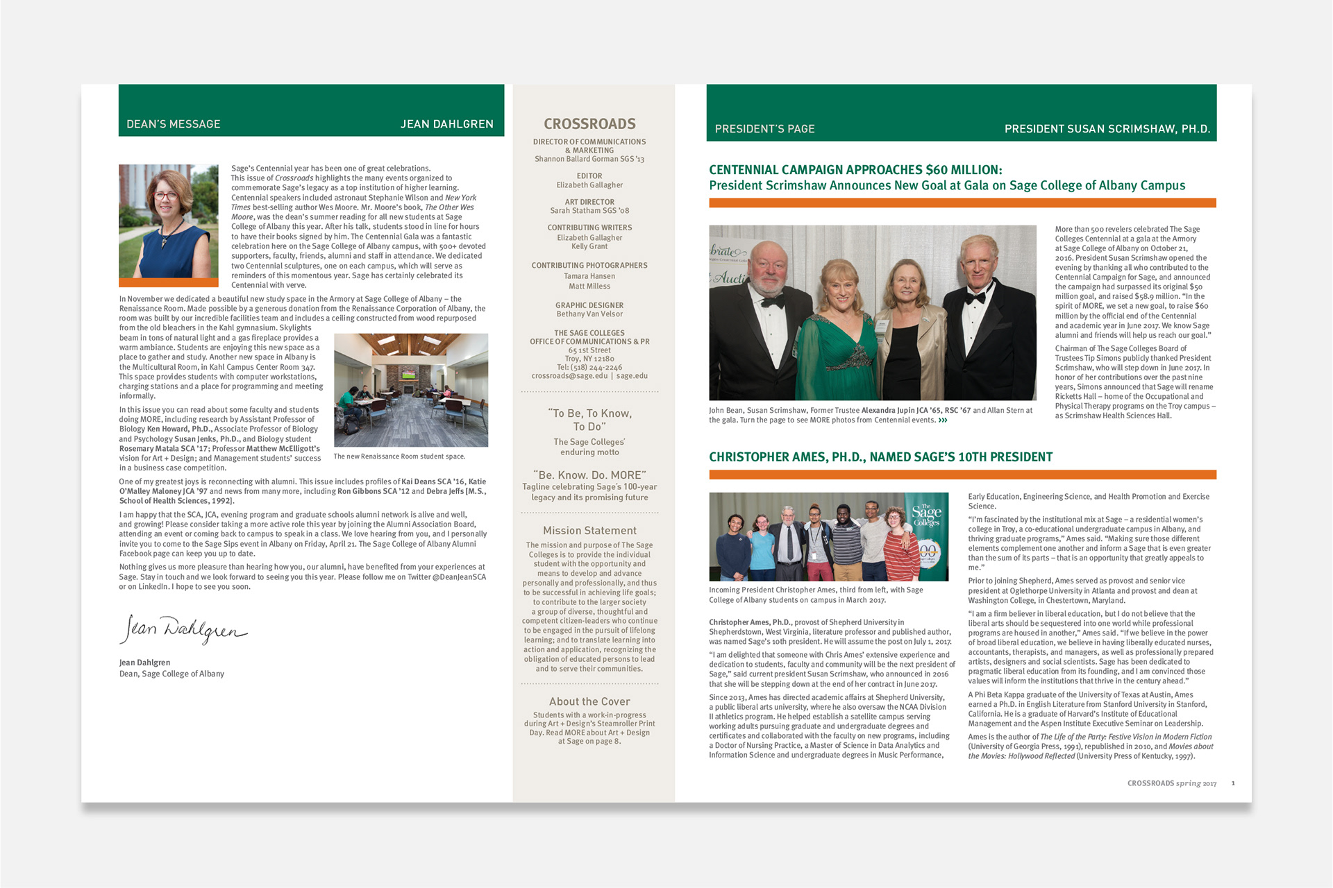 A publication for alumni of Sage College of Albany, the Sage Graduate Schools and the former Junior College of Albany and Sage Evening College.