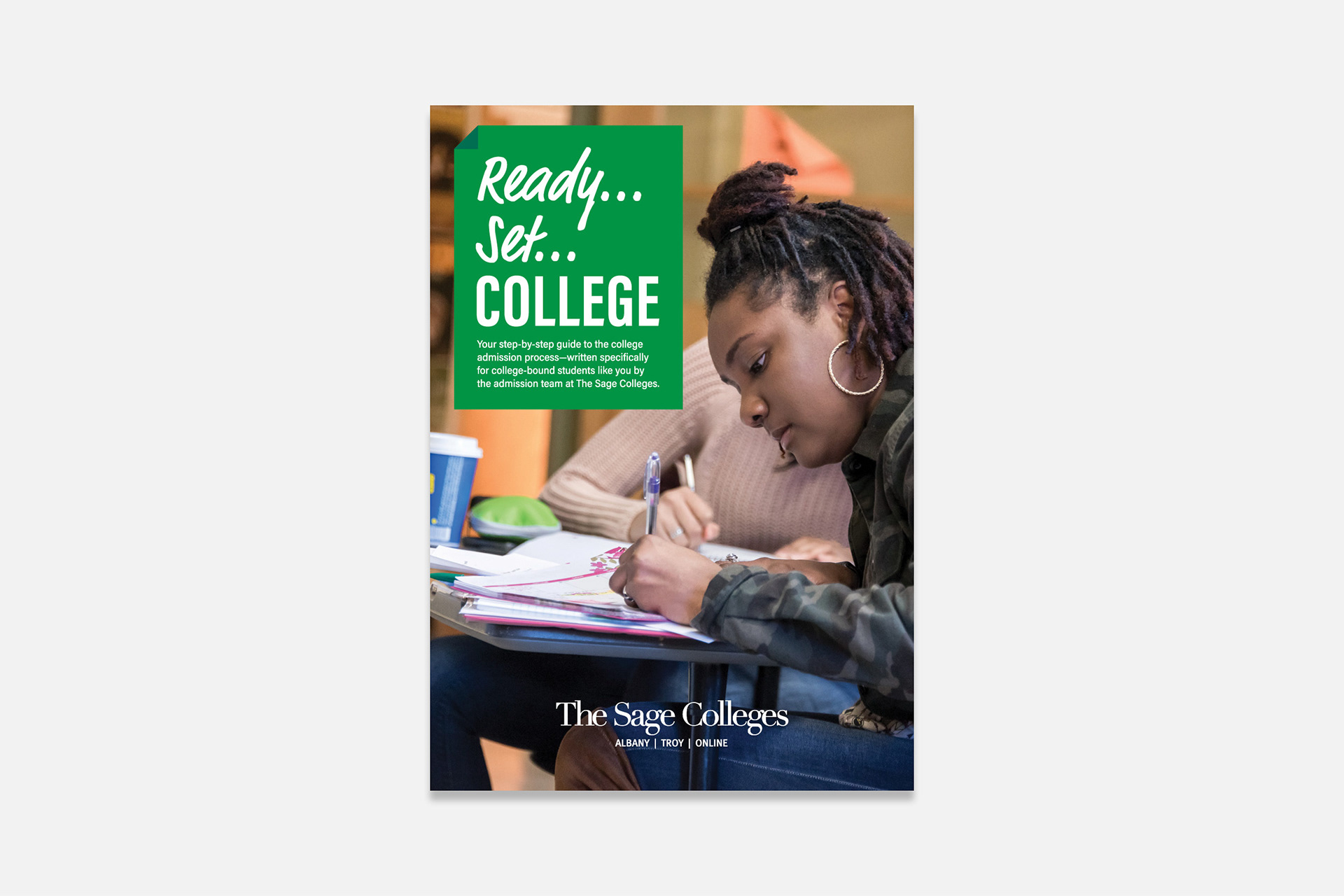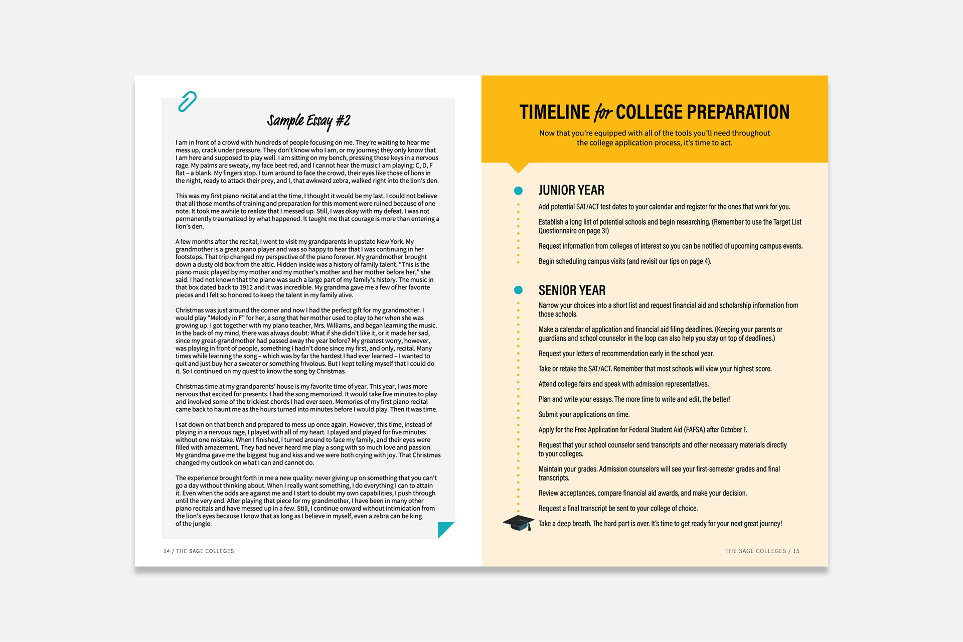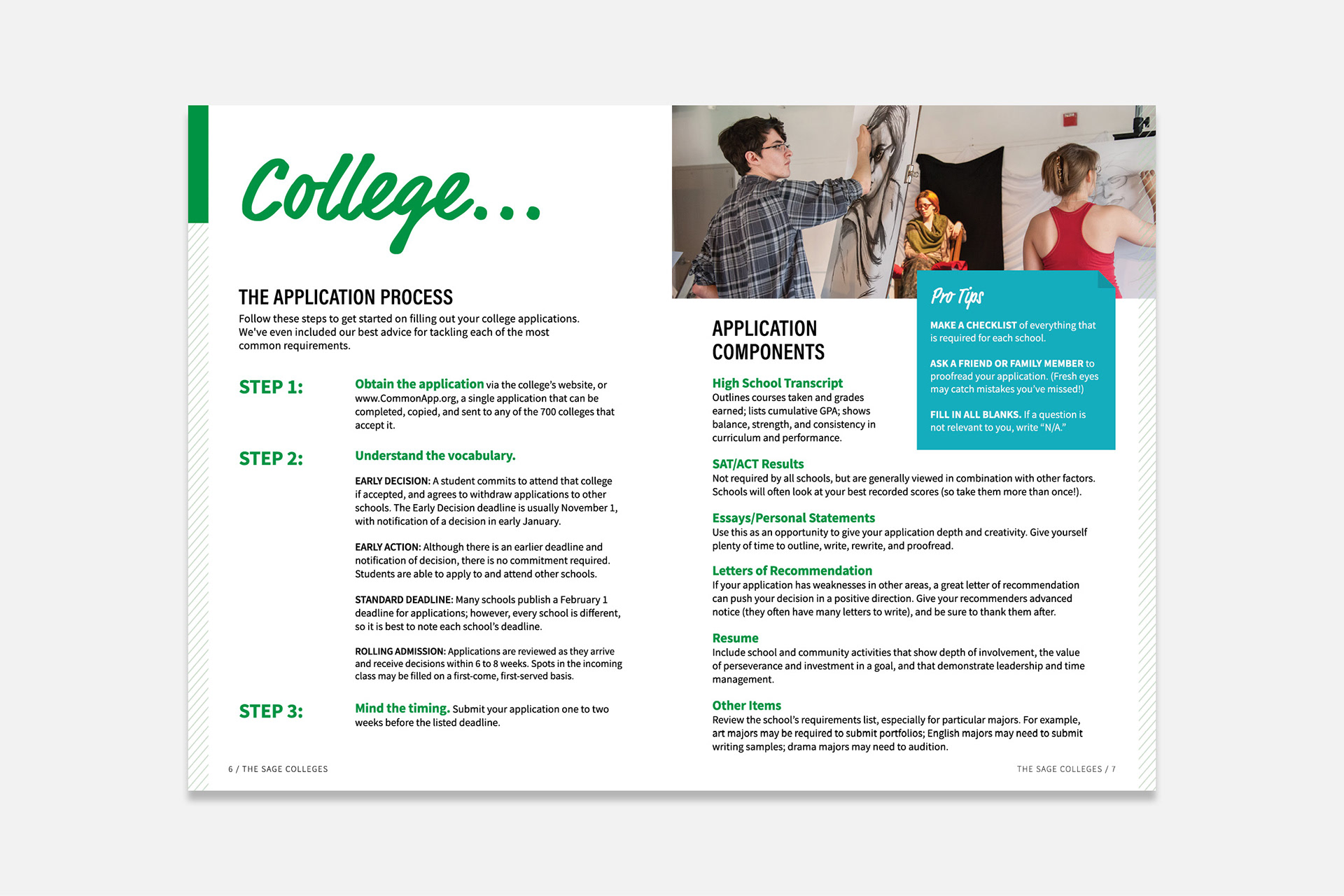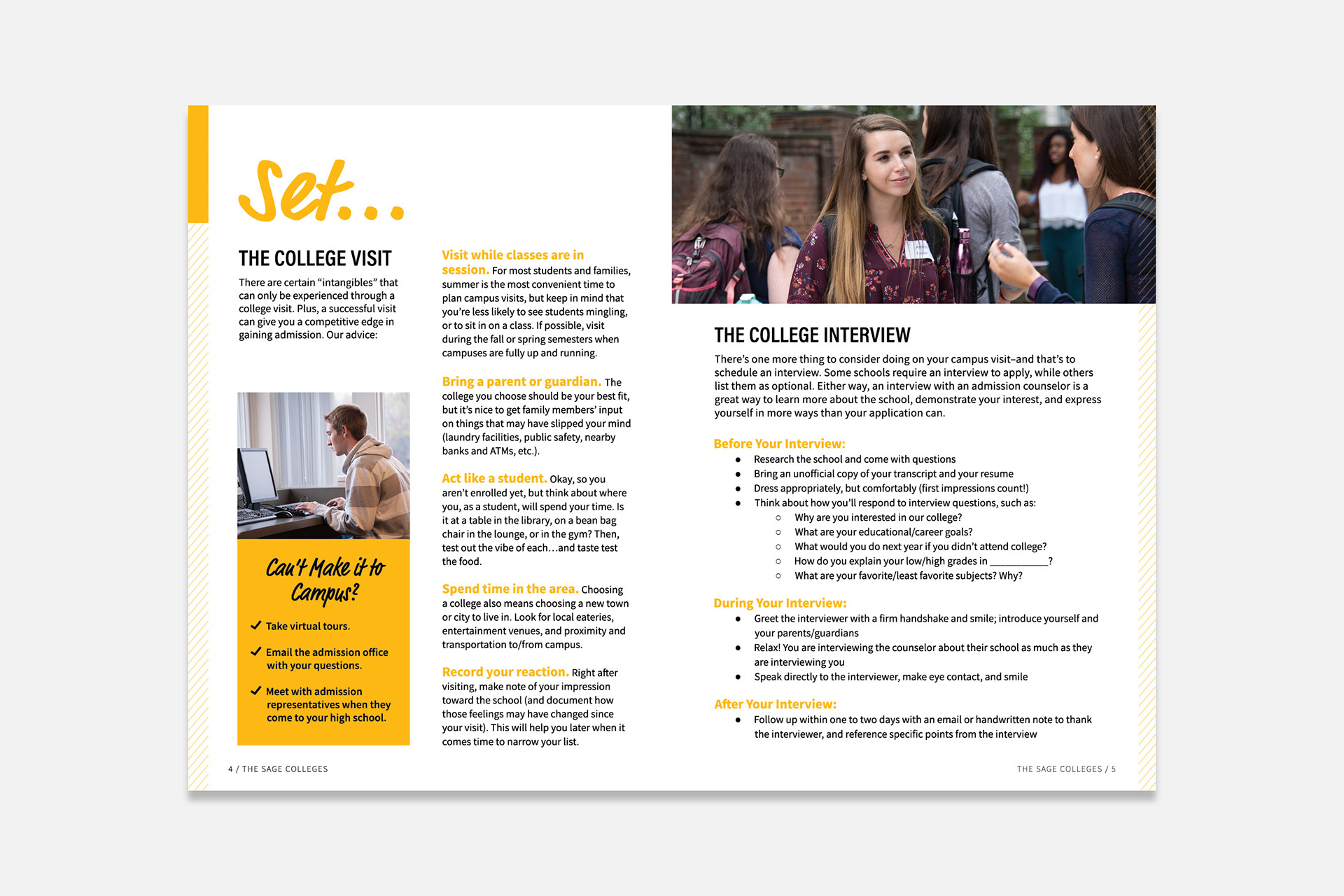 A multipage guide to the college admission process, created for the Office of Admissions at The Sage Colleges.