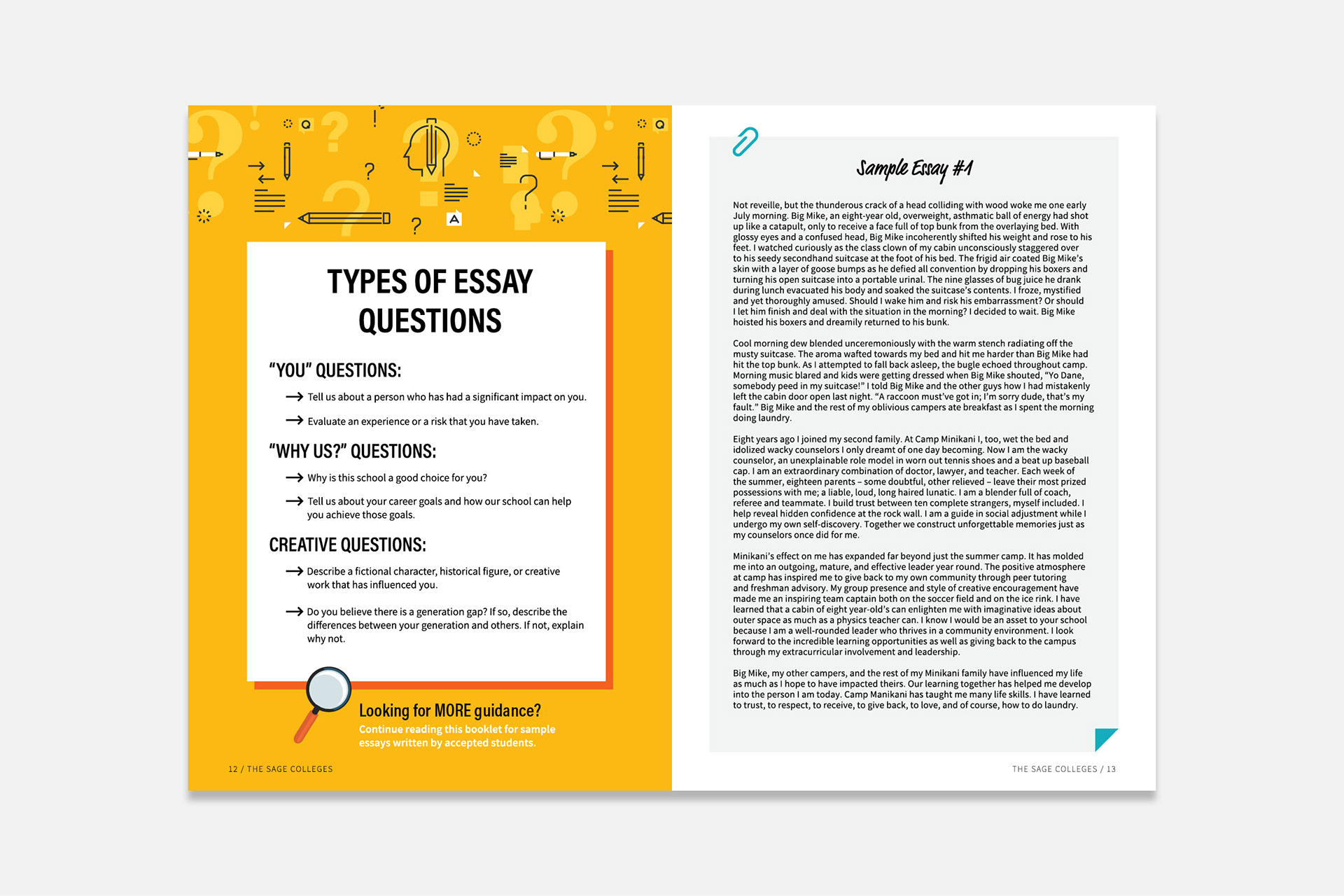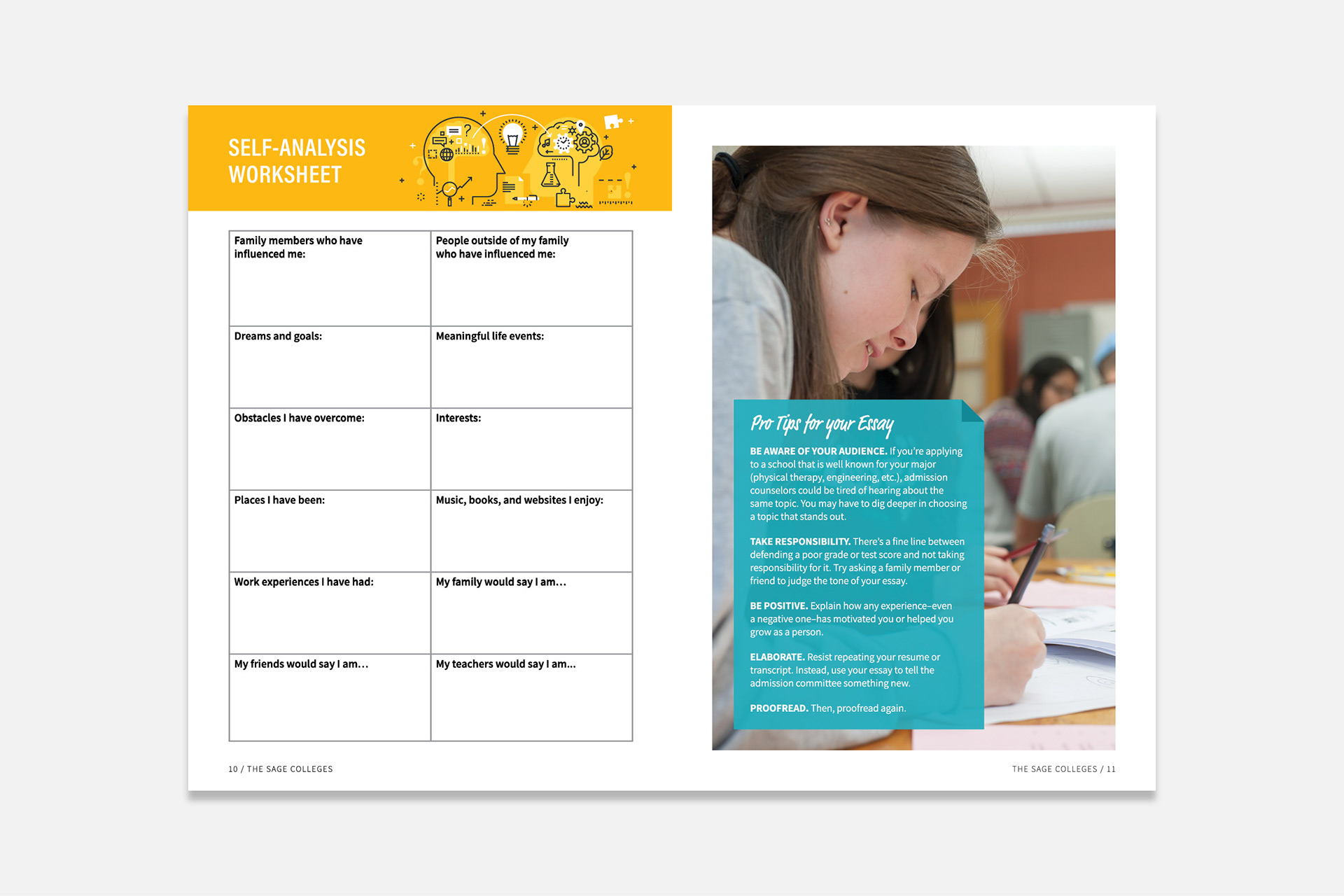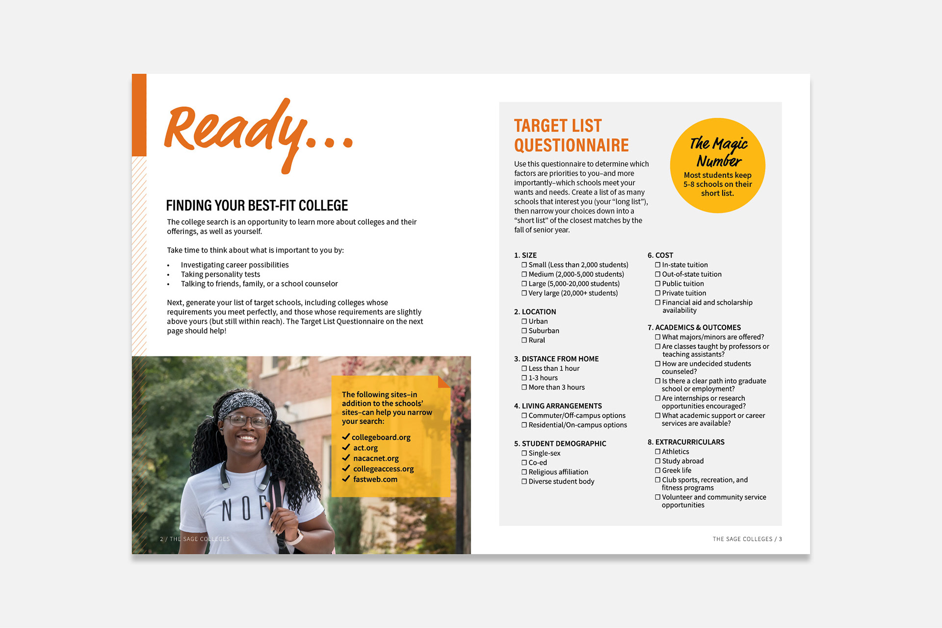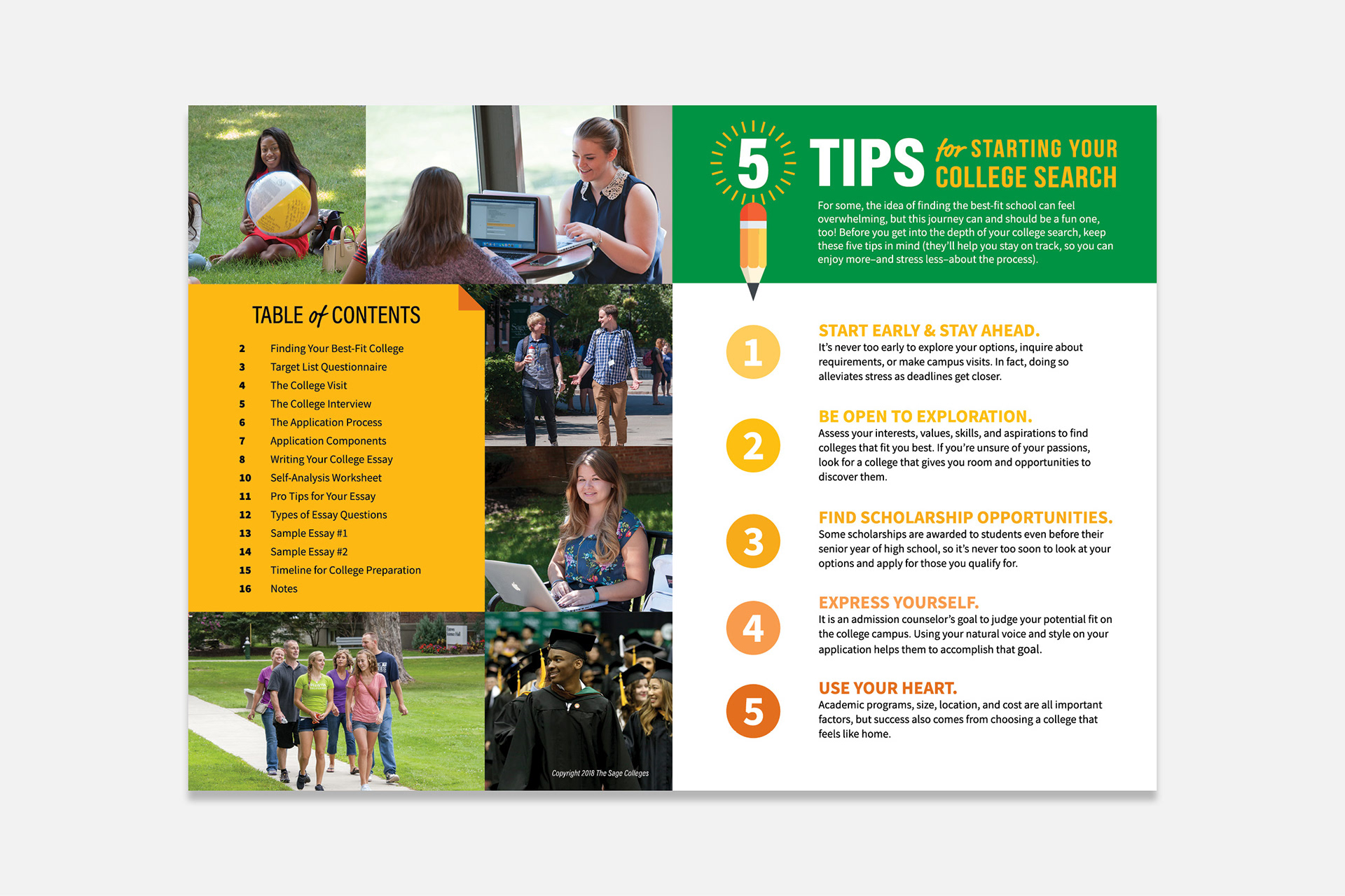 A multipage guide to the college admission process, created for the Office of Admissions at The Sage Colleges.