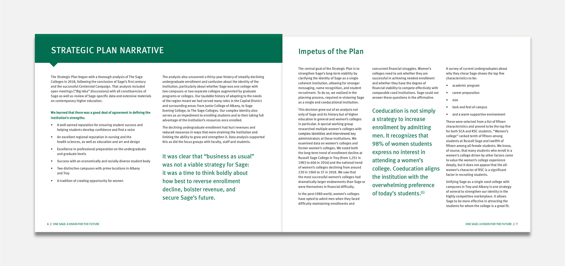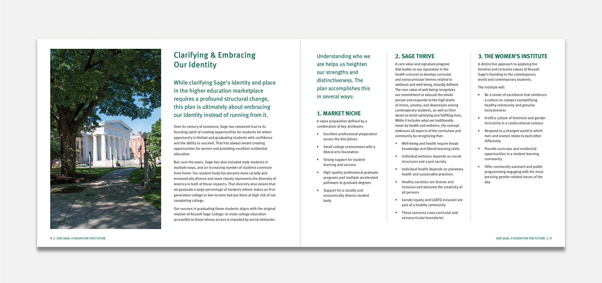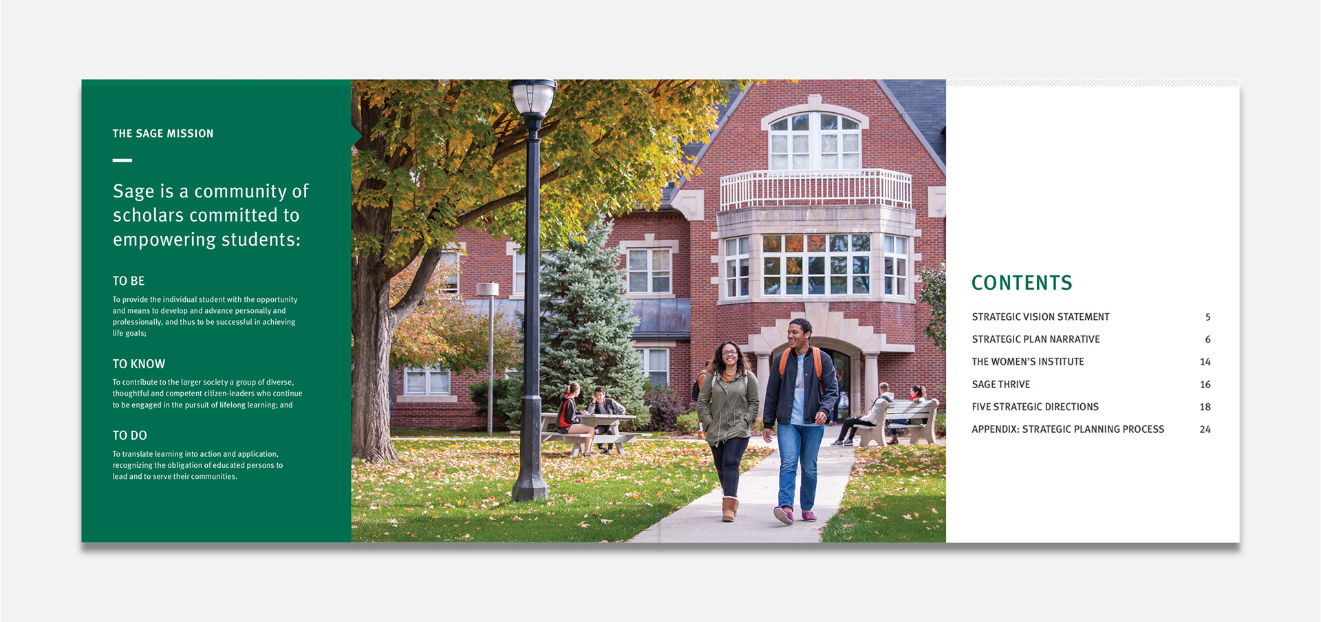 A booklet created for The Sage Colleges Strategic Plan in February 2019.