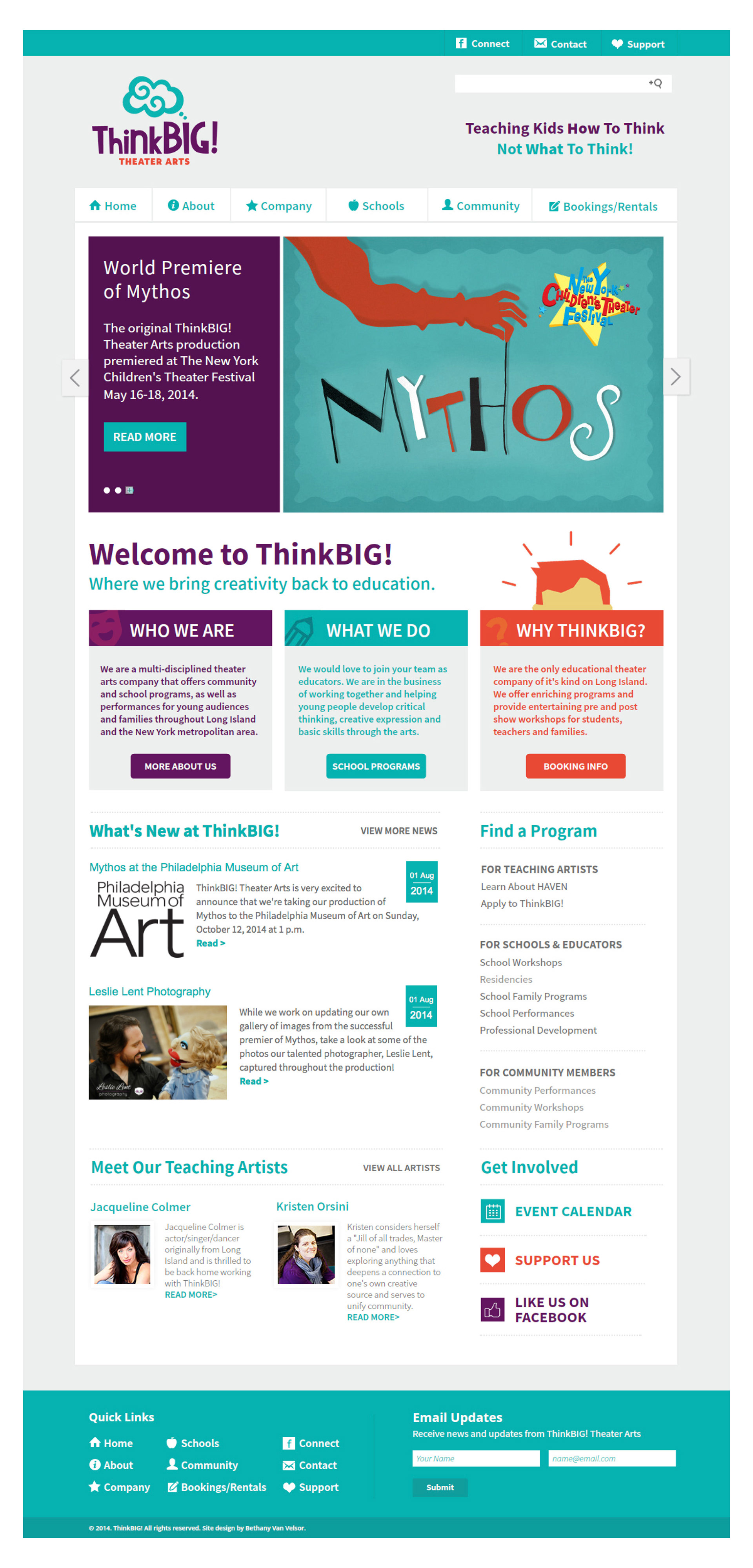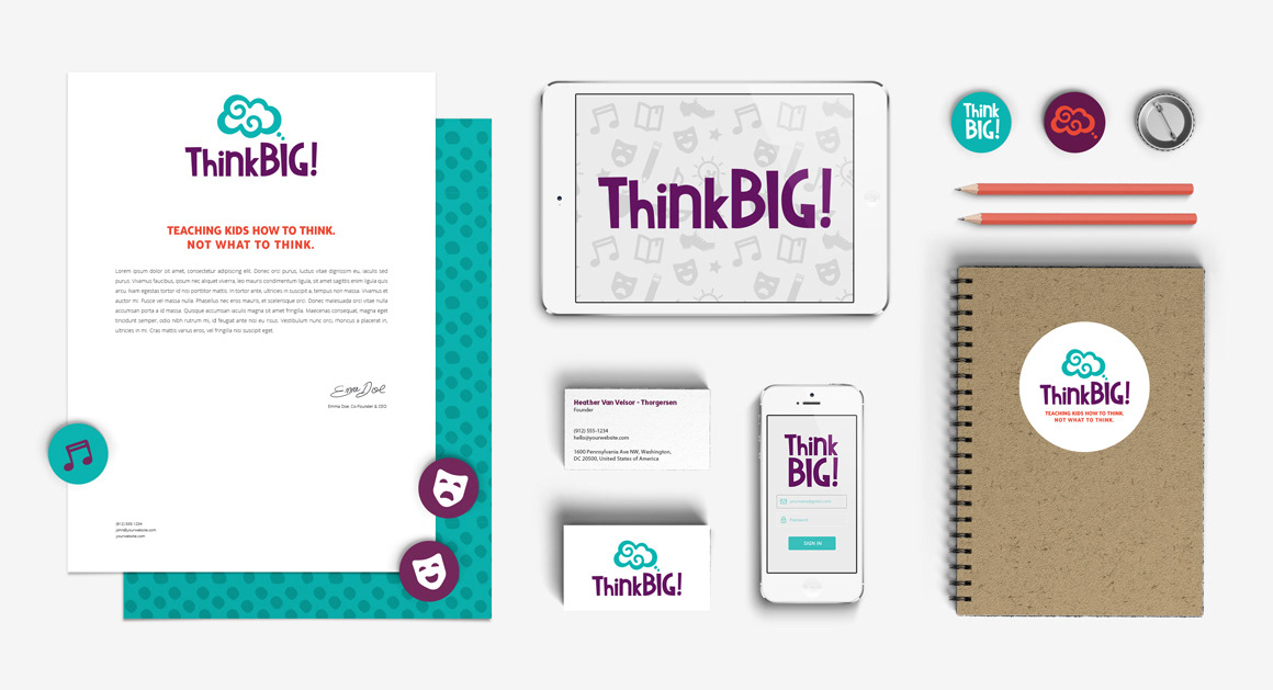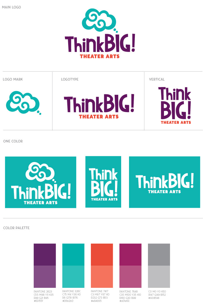Logo, visual identity, website design and other graphics for ThinkBIG! Theater Arts.